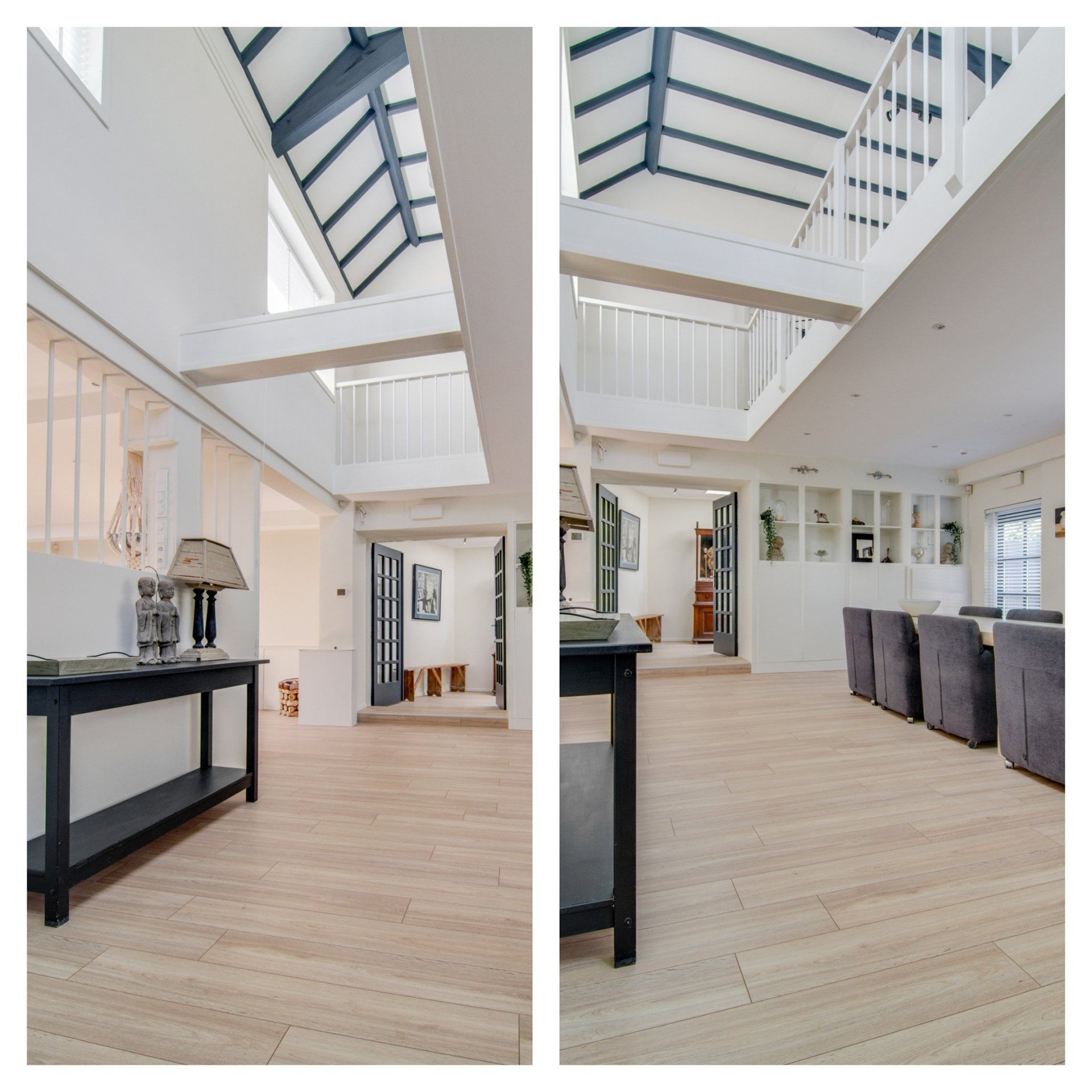 Dit kantoor is omgebouwd tot woning en wordt gemeubileerd verhuurd. Op een heel speciaal plekje, verstopt in het centrum van Laren staat dit leuke huis met allerlei leuke details zoals een vide, stalen deuren en dak koepels. Door met de fotografie de nadruk te leggen op deze details ontstaat er direct een uitnodigend vertrek waar velen in geïnteresseerd zullen zijn. Door extra tijd te besteden aan verticale fotografie waardoor je de bijvoorbeeld de hoogte van de ruimte kunt laten zien geeft net dat extra in de presentatie waardoor een makelaar sneller verhuurt.
