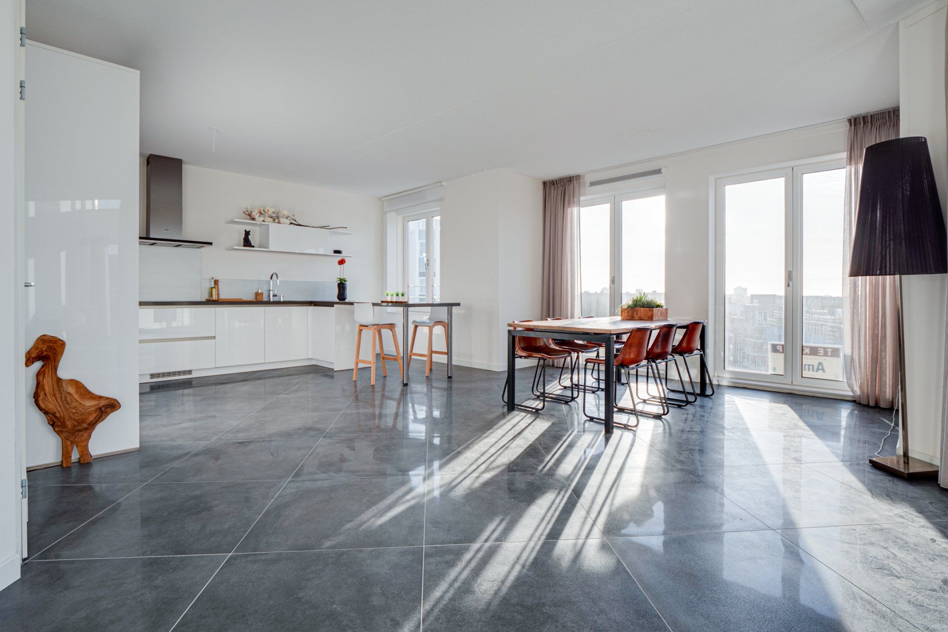 Een Penthouse in Diemen met twee verdiepingen, het bijzonder aan dit penthouse was wel ,dat deze twee entrees heeft, op beide verdiepingen 1! We hadden erg veel geluk moet ik zeggen dat de zon die dag zo mooi naar binnen scheen.